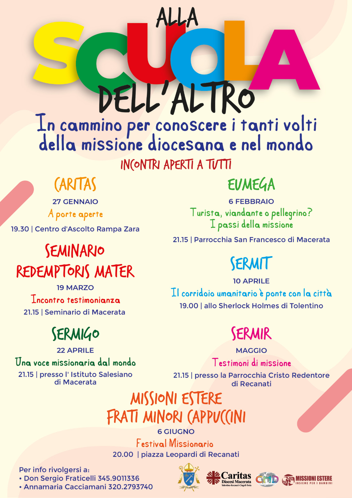 Quest'anno la scuola missionaria è itinerante. Scopriamo e viviamo insieme la missionarietà e la diversità in ogni scorcio di vita quotidiana. La scuola propone diverse date, differenti proposte da condividere in allegria e in spiritualità. Vi aspettiamo !!